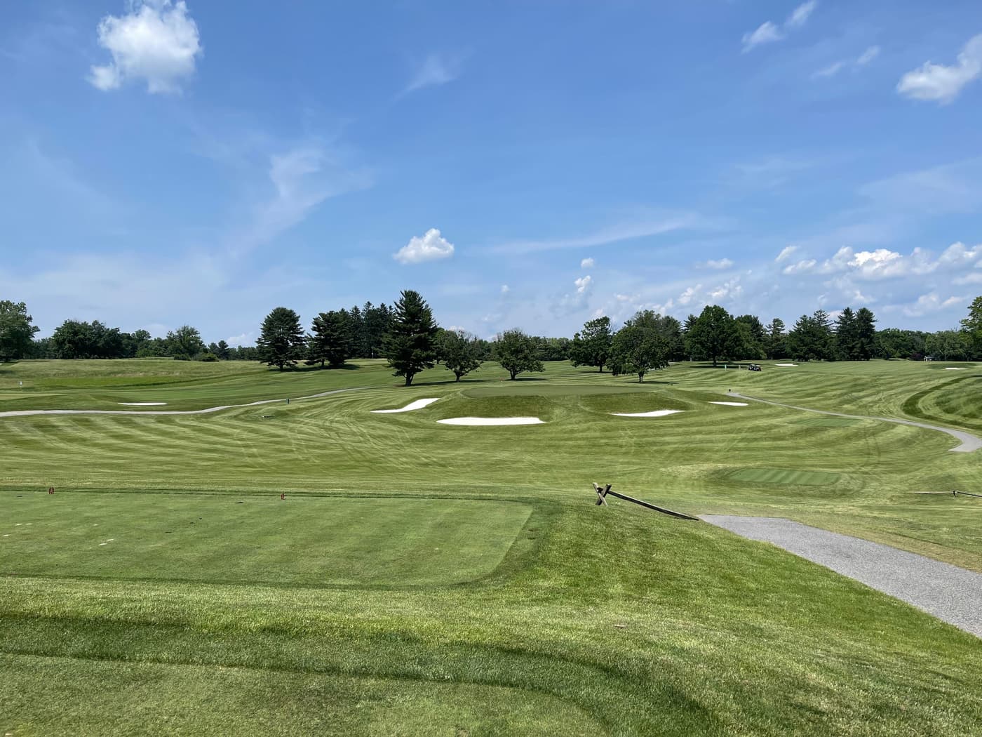 “Five Farms, which was once just the suburban course of the Baltimore Country Club, is now the hub of the club. It sits amid the rolling hills of Maryland’s “hunt country”, where horses have always been the major sport but from which golf is fast taking over… the course is not overly bunkered and neither is is tremendously long. But those hills present numerous sidehill lies after mishit drives and the greens can get fearsomely slick, although remaining awesomely true.