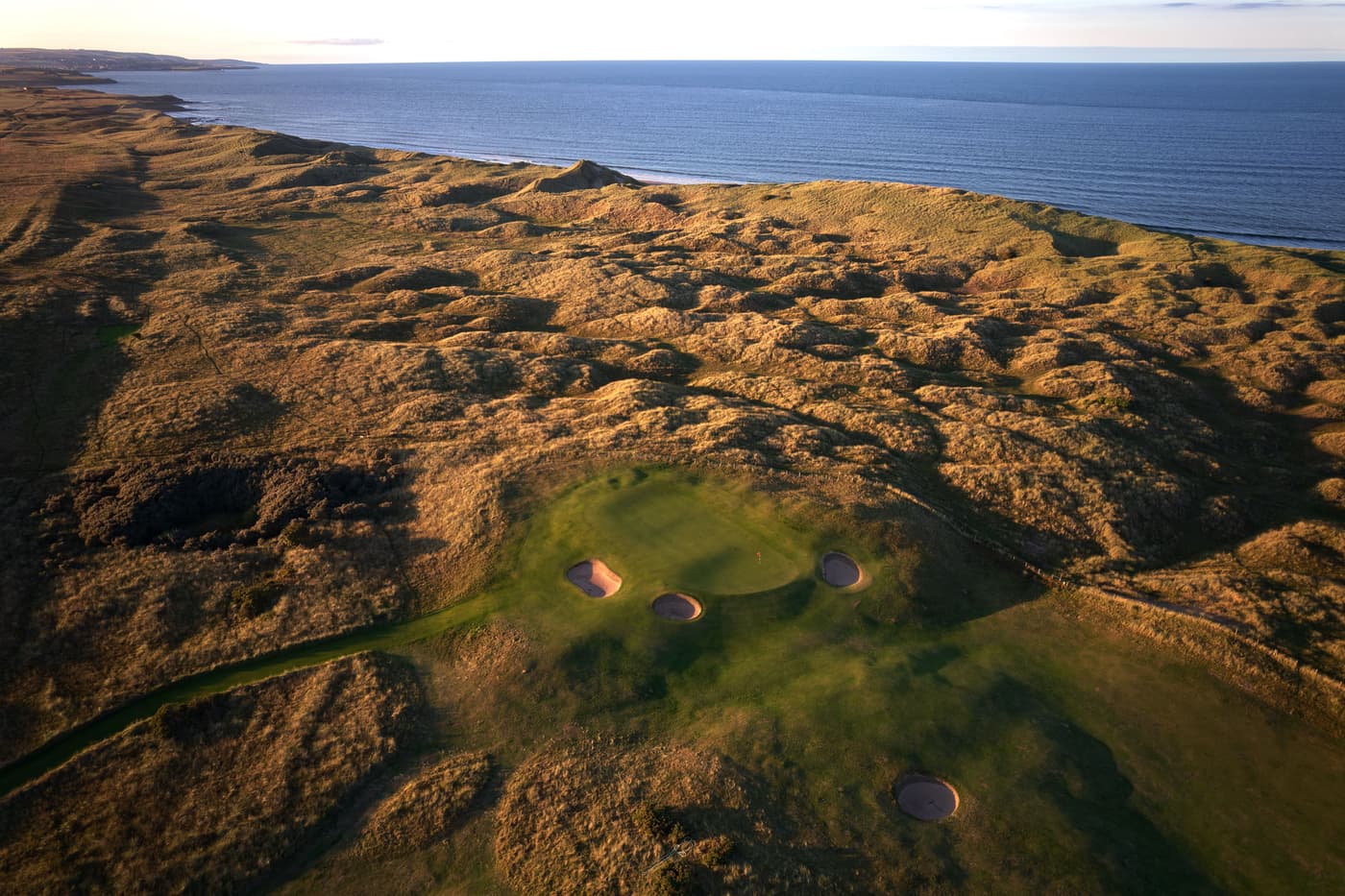 The 1st rises uphill as a dogleg and is followed by a short 2nd across a chasm. The 3rd is now the longest par four on the course at 437 yards. Exposed to the elements, the challenge on the front nine is variously dunes, out of bounds on 6th and 7th and contoured greens, most notably on the medium length par four 8th.