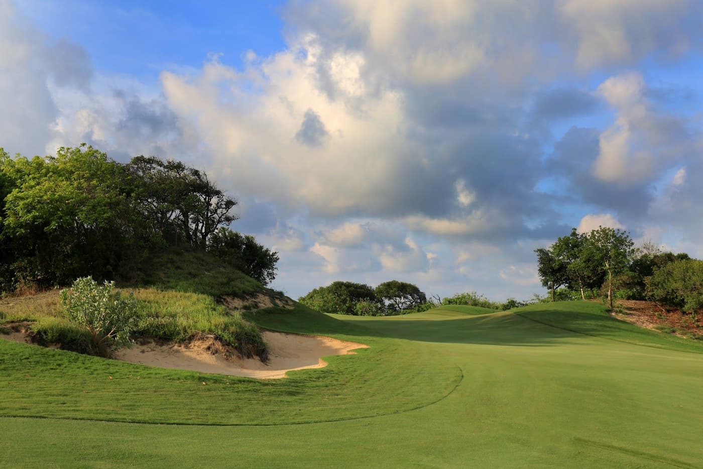 The highest point of the windswept property is located fifty metres above sea level on the 15th green but the most spectacular vantage point arrives earlier in the round at the signature par three 4th hole where golfers are treated to full 360 degree views of the course, the coastline and the Grand Ho Tram Strip, Vietnam's first integrated casino and golf resort.
