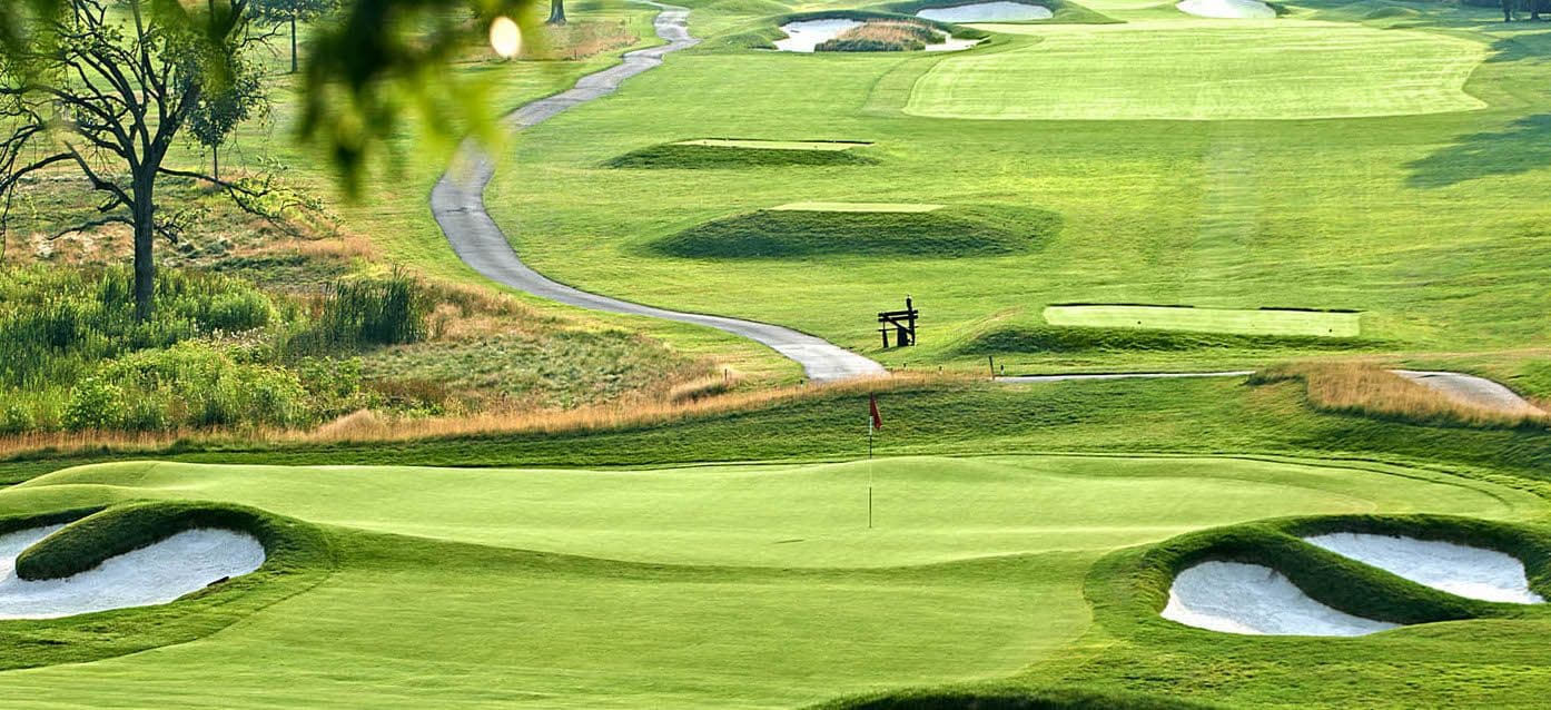 Set out within a generous 384-acre tract of land, the three nines (named Pines, Willows and Falls) can be configured into three different 18-hole layouts, with the Pines and Willows combination forming the original Old course.