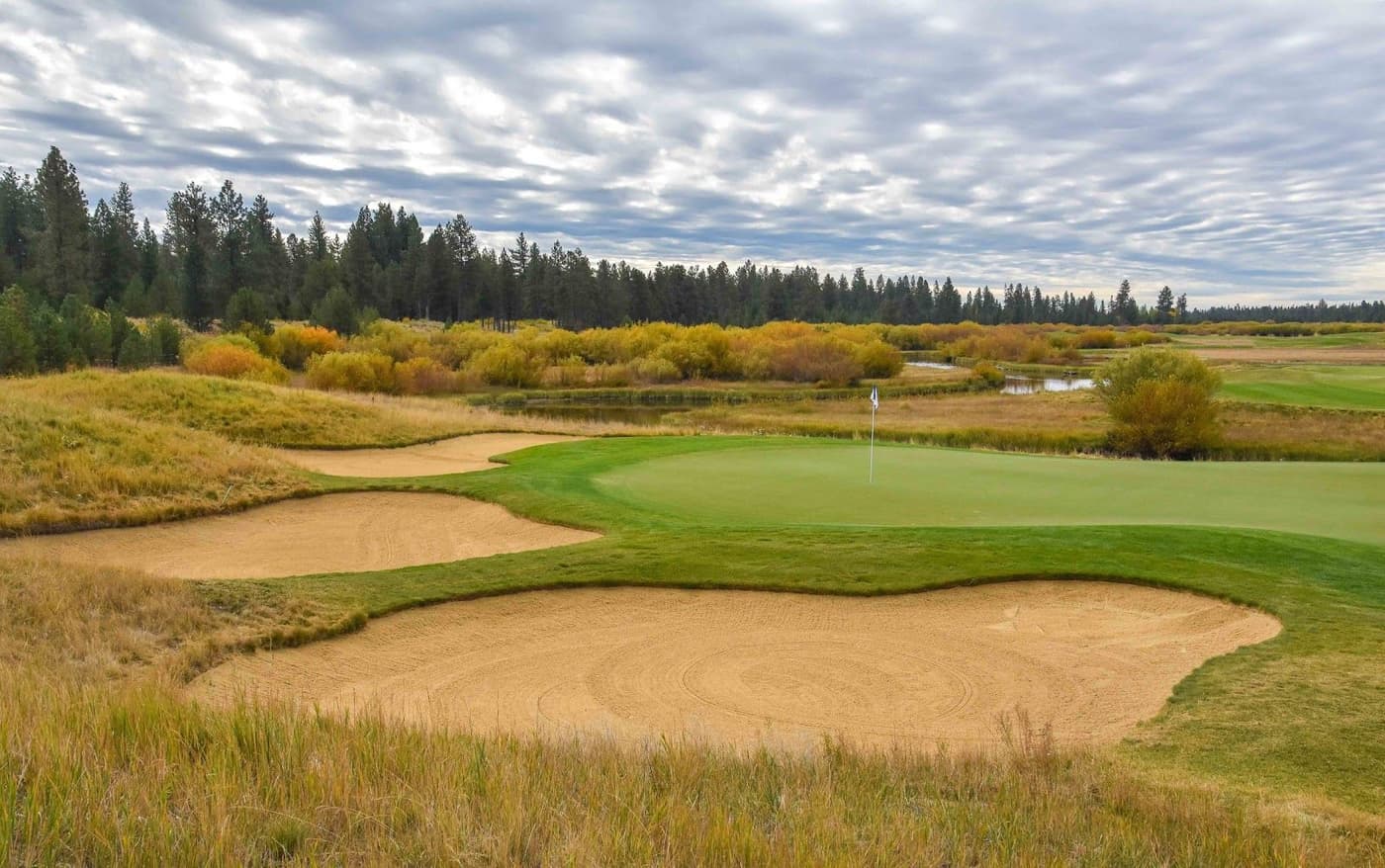 It’s a long course – 7,700 yards from the back markers with the four par fives measuring an average of just over 620 yards – and, as its name suggests, it forces golfers to navigate around water and wetlands a number of times as the Little Deschutes River runs through the property, with the Big Deschutes River to the west side.