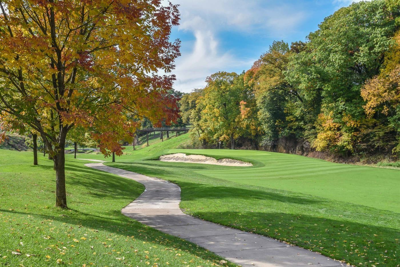 Alison’s routing had #18 playing as a 90 degree right turn up the hill. This old green is now the practice putting green. Midwest architect Bob Lohmann deserves a lot of credit for the current routing. He placed the green across the creek, keeping the hole in the valley. Not only is it a much better green location, but the player encounters Cardiac Hill only after he is done with his round.