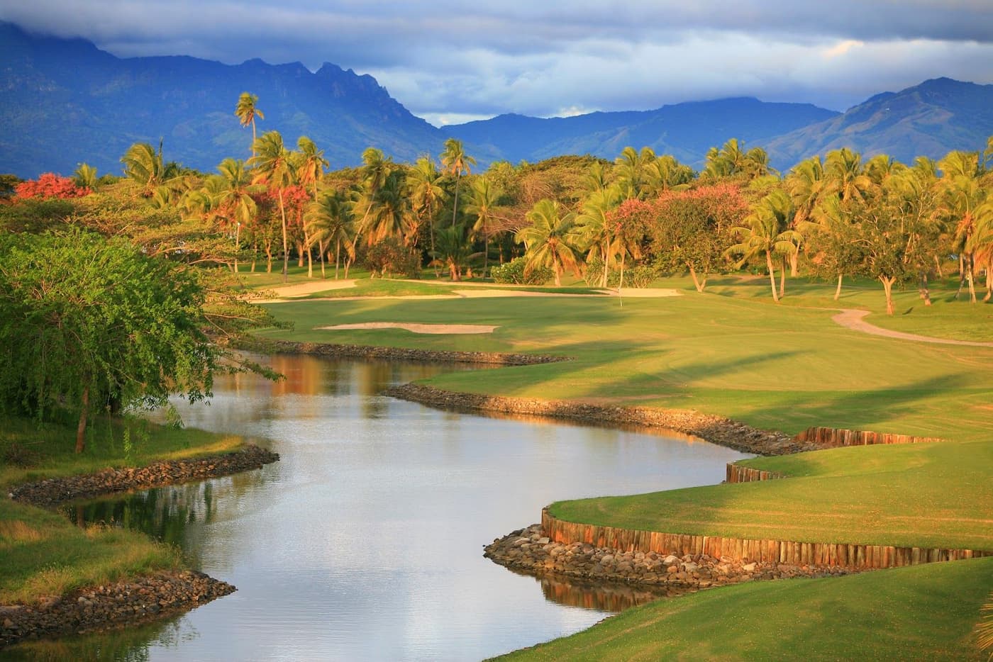 One of Fiji’s premier championship courses is laid out at the resort of Denarau Golf & Racquet Club and its generous, open fairways wind their way around stands of giant coconut palm trees and tidal waterways – with water hazards featuring on no fewer than 15 of the 18 holes!