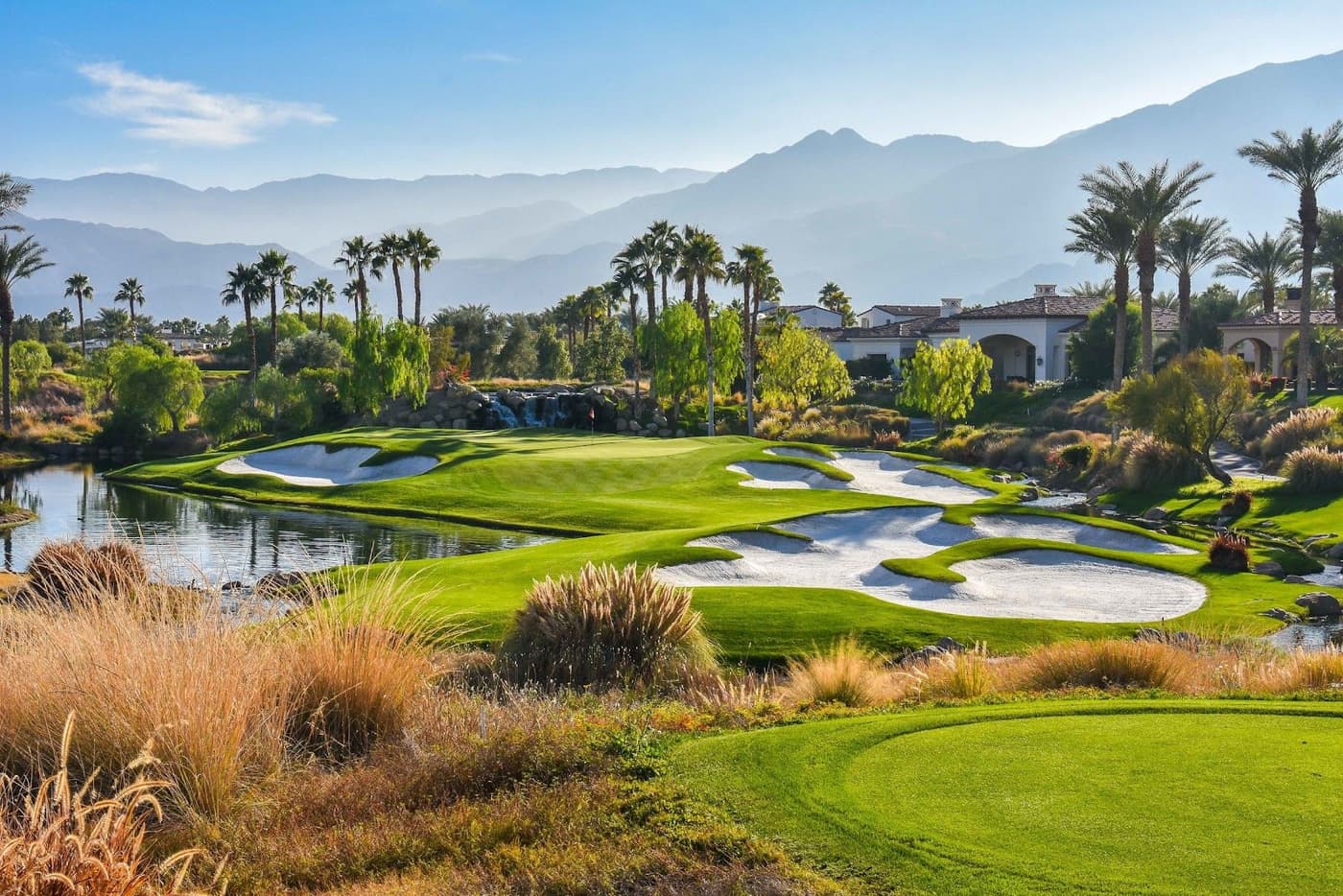 Anybody anticipating a British-style of design with this course can think again as it’s totally inspired by its Southern Californian surroundings, resulting in a multitude of bunkers, a number of cascading waterfalls and palm trees aplenty.