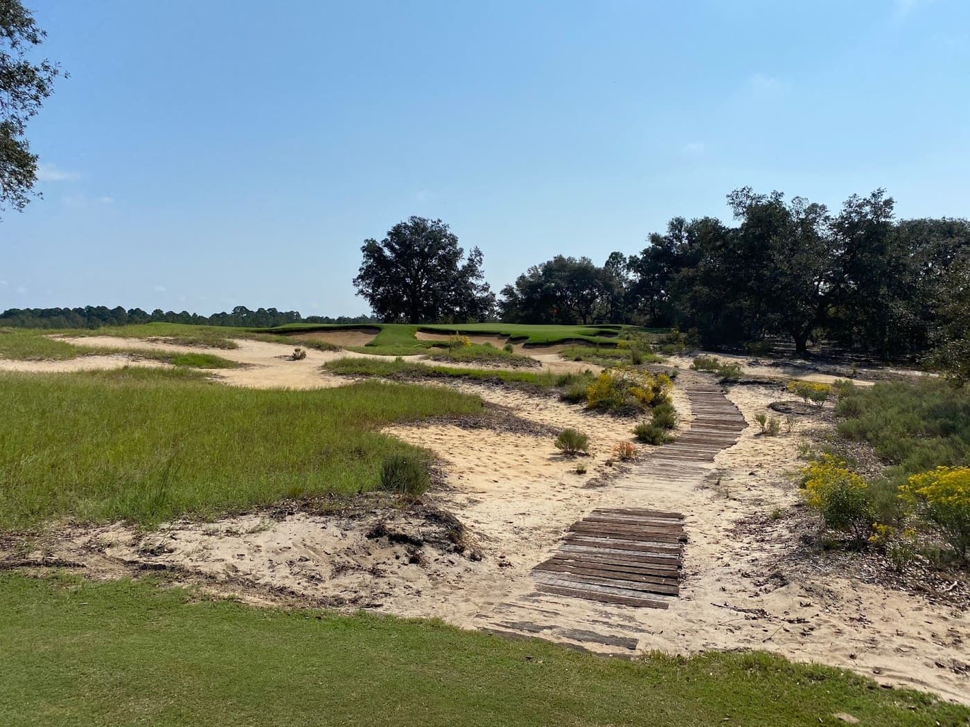 Trade-offs abound at Ohoopee, and the golfer is left to make the decisions. And that is (1) exactly as it should be, and (2) superb architectural design. The greens are large and resemble “mergers” of several bowls… with the bowls separated by reasonably high ridges within the green. In many ways the greens reminded me of Hanse’s work at Streamsong Black.