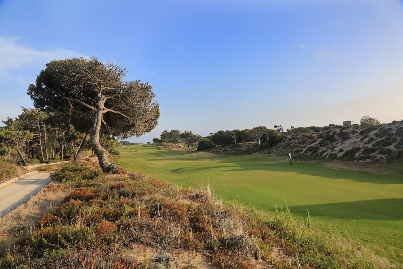 Oitavos Dunes is a most recent addition in golfing terms to the area and was inaugurated in September 2001. The location of Oitavos Dunes is on land at the most westerly tip of Europe and the course mixes wondrous views of the Atlantic Ocean with the stunning backdrop of the Sintra Mountains. Designed by the renowned Arthur Hills, Oitavos Dunes is one of only two European courses that bear his name. Most of Hills’s courses are in the USA and as a consequence there was always the danger that he may have built a stereotypical US ‘target golf’ course. Thankfully, Oitavos Dunes has none of that feel and is a wonderful test that perfectly utilises the rich tapestries of this area of Portugal to create eighteen challenging but playable holes.