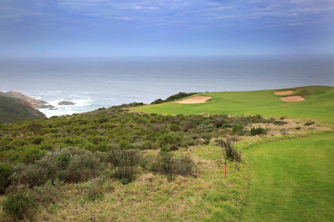 The signature hole is the par three 17th, played downhill to what, in modern course design parlance, is termed an “infinity green” with the sparkling Indian Ocean as a backdrop. If conditions are kind, it should be relatively straight forward to avoid the four bunkers protecting the green to card a three here, but if the wind is up on such an exposed cliff top, who knows what score might be posted.