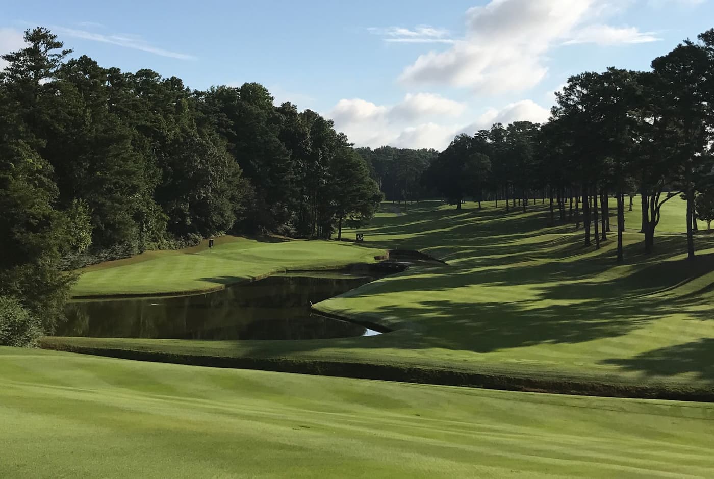 Peachtree’s glorious location bears more than a passing resemblance to nearby Augusta National, certainly in terms of the tall pines, azaleas and dogwoods in full bloom. Fairways follow the natural contours of the landscape, often leading to enormous greens that are well protected by sand, water or both.
