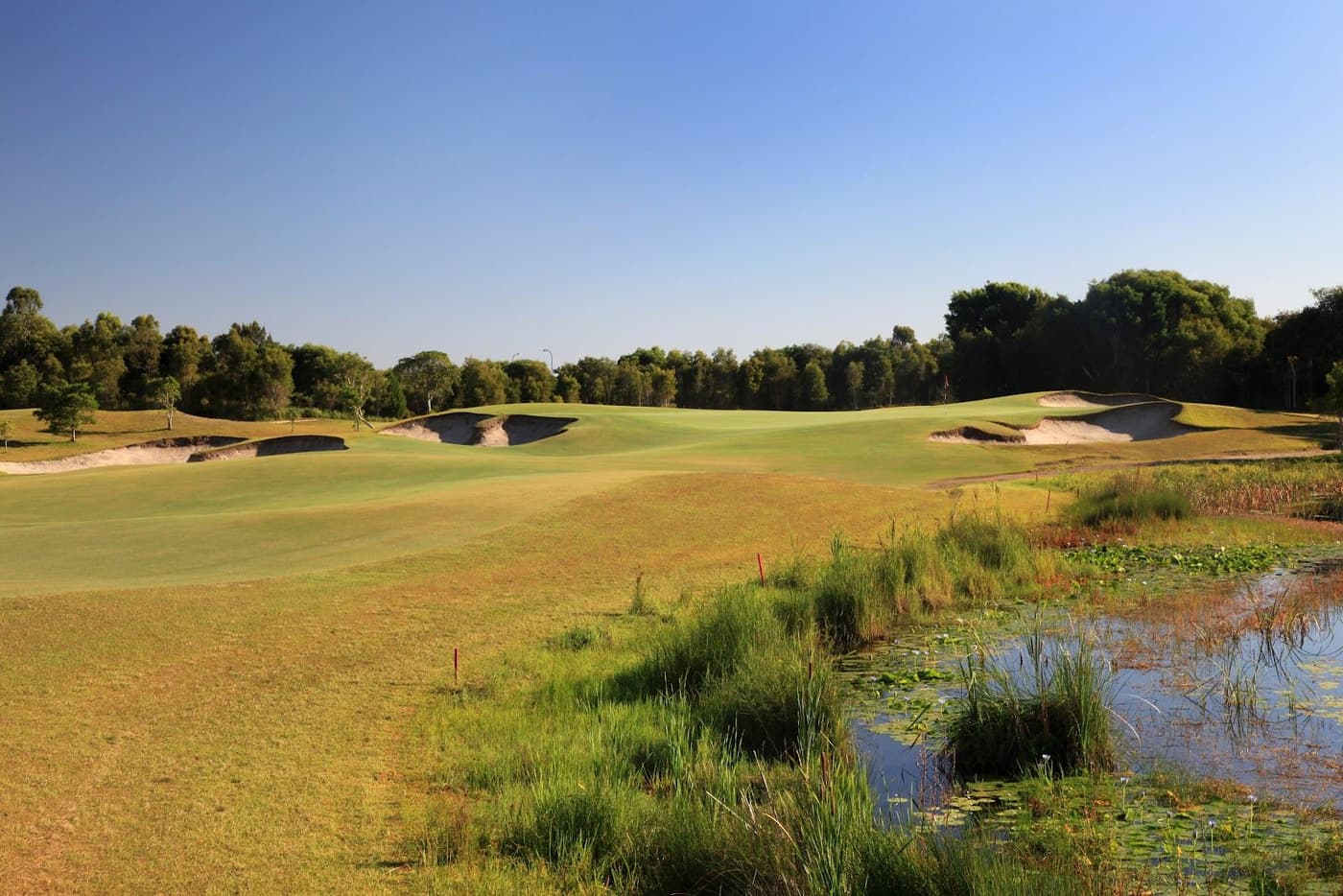Situated in the Golden Beach area near Caloundra, Pelican Waters lies on relatively flat land with creeks coming into play at nearly every hole so bring plenty of golf balls if your driving or approach play is a little wayward as you will be suitably punished!