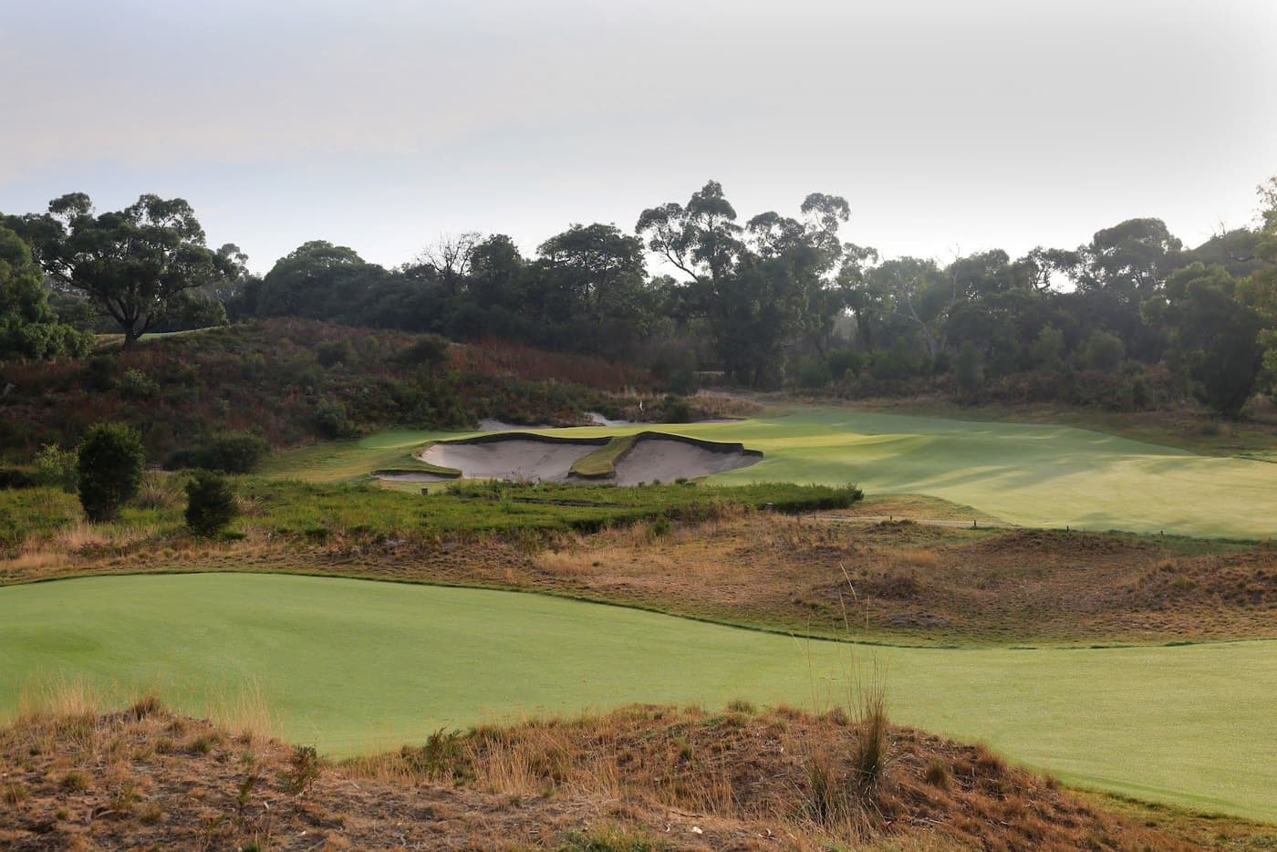 Although most of the courses on the Peninsula are set back from the shoreline, all have the tang of the sea being sand based. The two courses at Peninsula share kin relations with their older cousins near Melbourne by virtue of being sand based and in the manner in which the holes circulate through native bush. And although decades of careful ministering of the last remaining bush of Sandringham, Black Rock Oakleigh has provided a delightful backdrop to the holes you are frequently reminded that you are playing in the middle of suburbs. Woodlands and Commonwealth are better shielded but even at grand old Royal Melbourne you find yourself taking aim on somebody’s bedroom window, or get distracted by the rumble of a car backing out of a driveway behind a green.