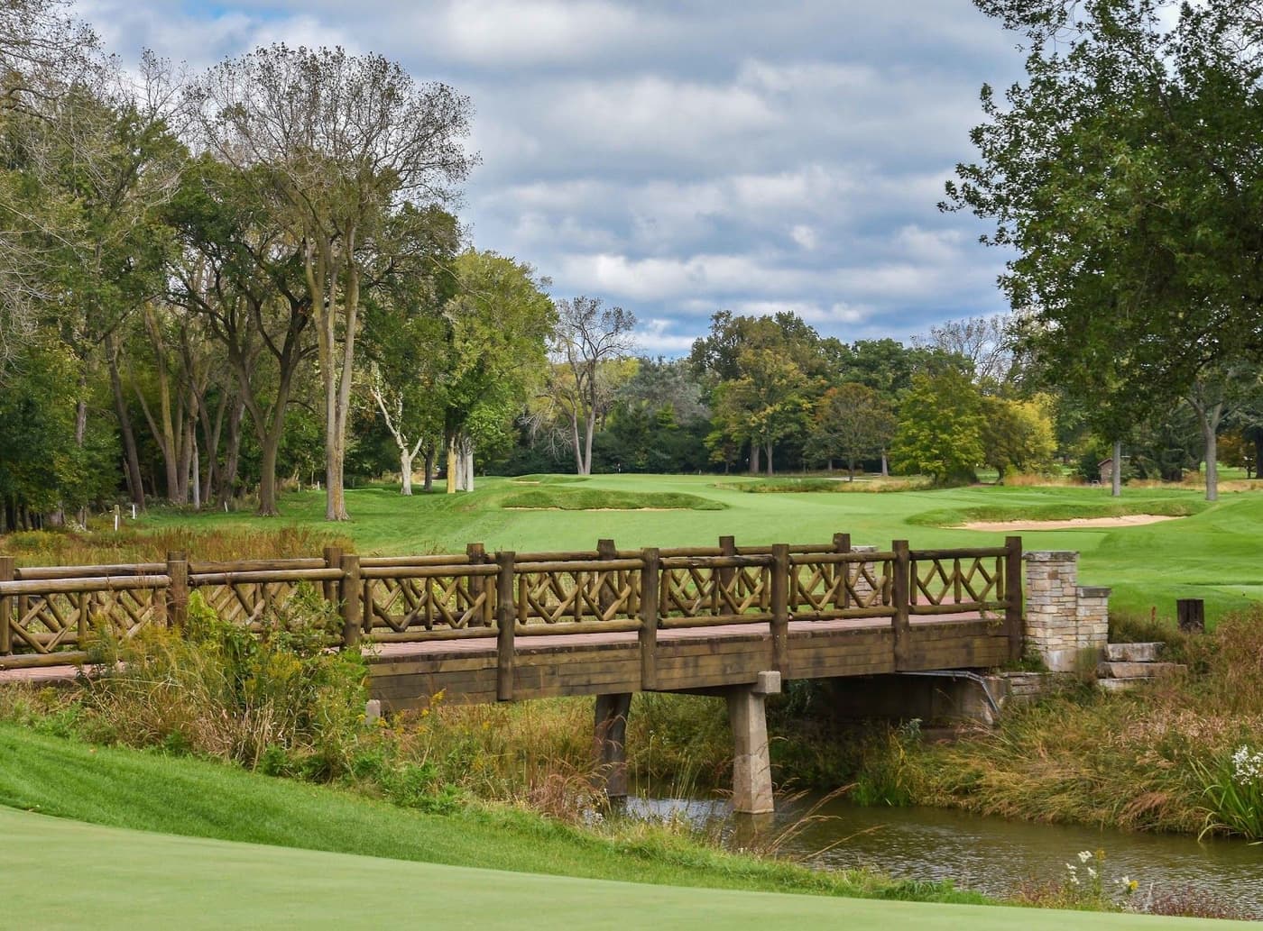 Perhaps Skokie’s best hole is the double dogleg par five 11th which is heavily bunkered from fairway to green and flanked on the right by a brook.
