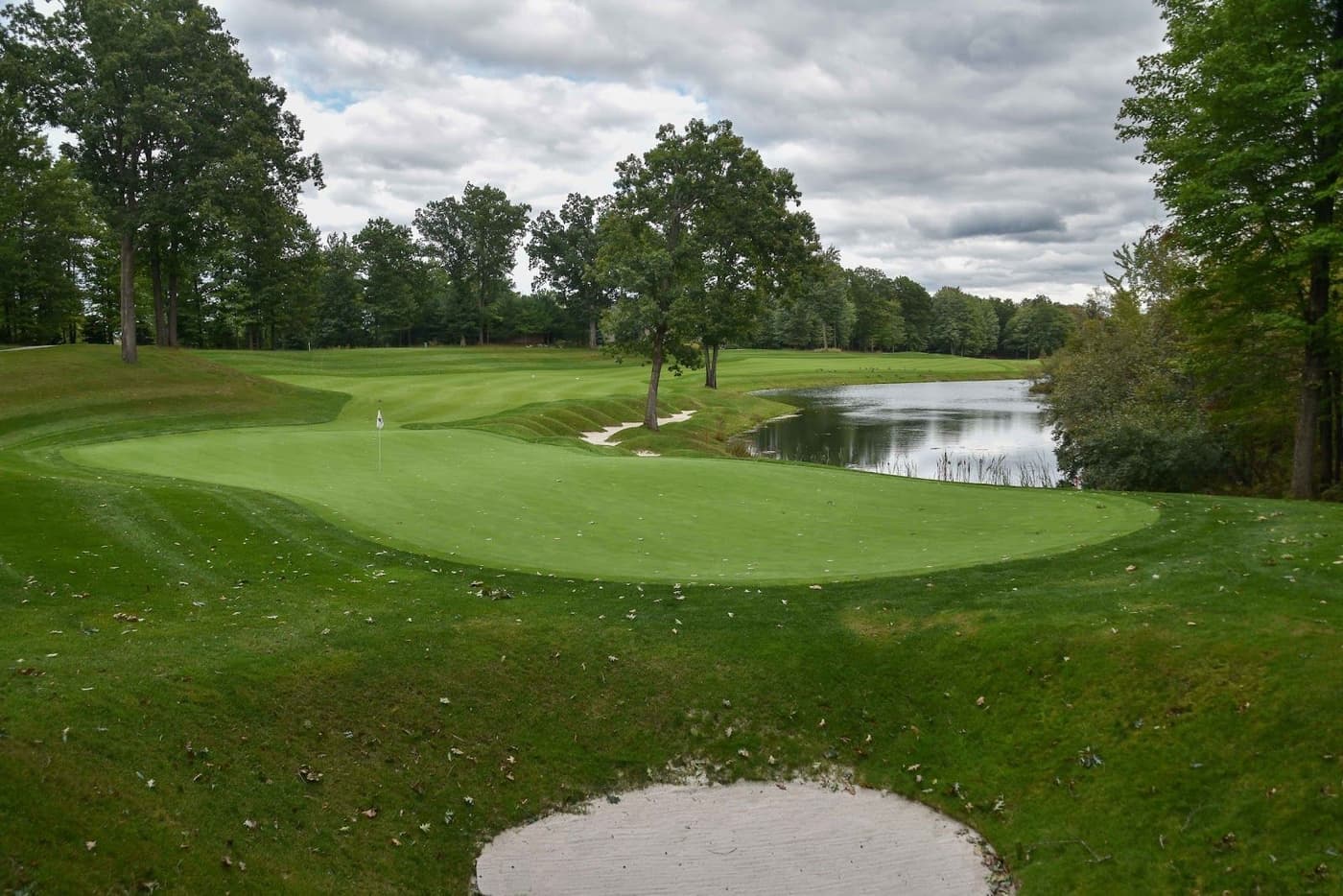 “With its wooded vegetation and wetland preserves, Tullymore has a character unique to the world of golf,” wrote Engh. Tullymore is routed through woods and water with the Shinglebolt Creek meandering into play on a few holes. This is a vast site of some 800 acres but the Tullymore playing surfaces are polished to perfection. The closing hole is considered to be one the greatest and most photogenic finishing holes in Michigan.