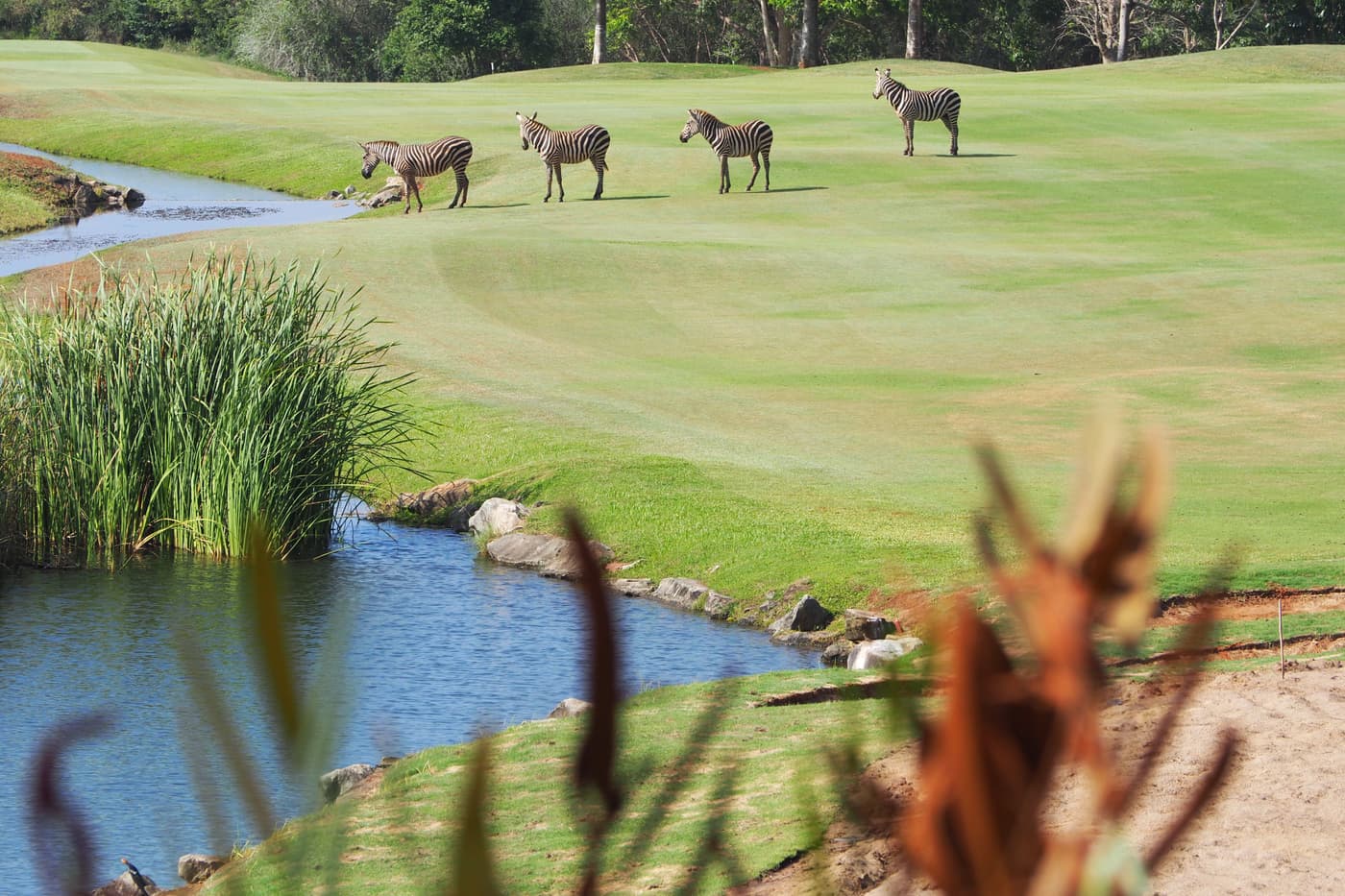 The water and stream system was my bit of real inspiration that makes the whole thing work so well. Originally the site was quite barren as an old derelict sisal estate. I decided to pump water up from the natural dam to the large dam I created at the 16th, and from there to the clubhouse.